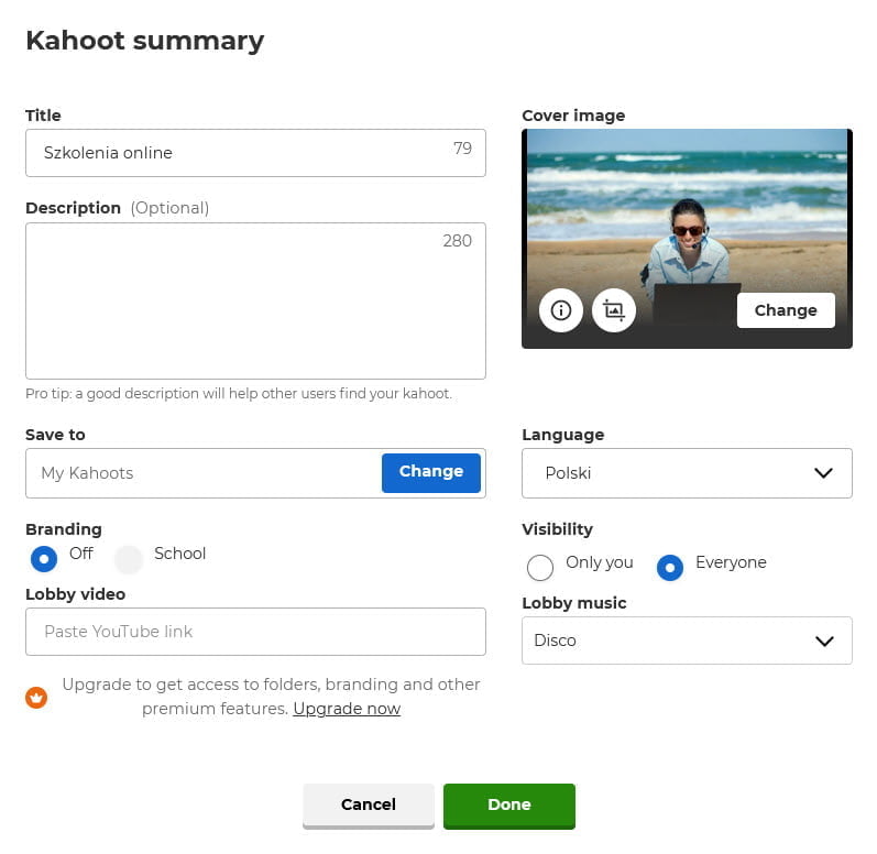 Warto zaznaczyć, że możliwości Kahoota są inne w każdym typie licencji. Niestety czyni to ofertę nieprzejrzystą. Inne opcje dostępne są w licencjach biznesowych, inne w edukacyjnych a inne dla osób indywidualnych.